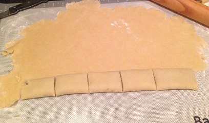 Assembly and baking: Take out the dough and roll out into a large square until the dough is a little less than 1/8in. (2mm) thick (for both homemade and store bought).