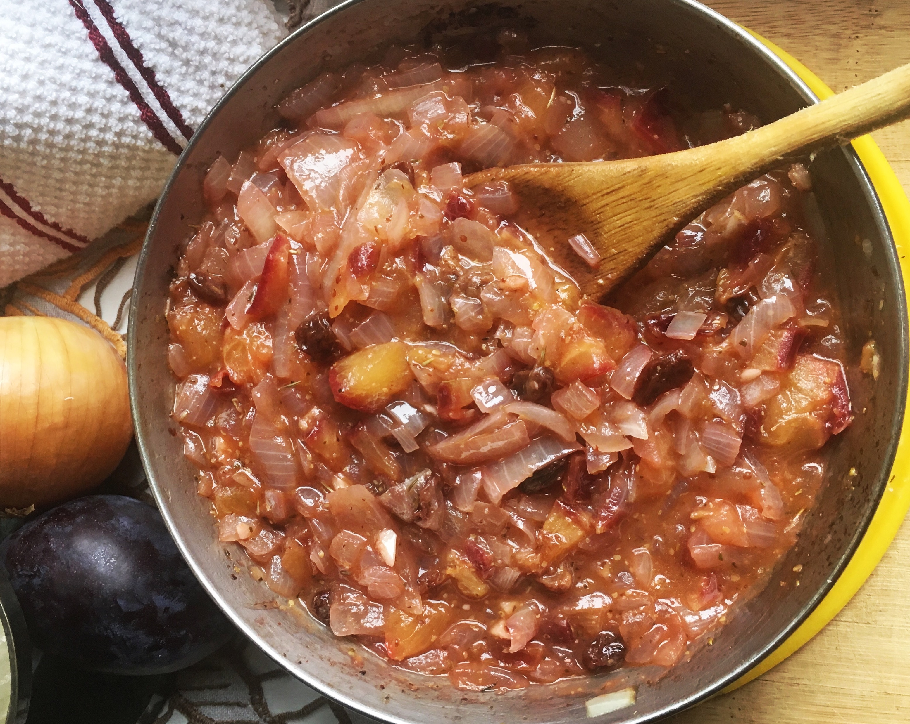 This recipe is simple but has a lot of good flavors, and can be used as an accompaniment to meats and other dishes. Just use the most sour plums you can find in your grocery store. I used damson plums so that’s what I put in the ingredient list below.