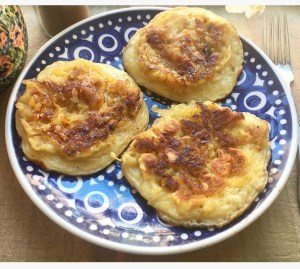 For this recipe, you can either thinly slice or grate your apples. It really doesn’t matter which you choose, but obviously slicing is less work! You will need one less apple if you slice. In the above placki, we grated 3 apples and made 16 placki.