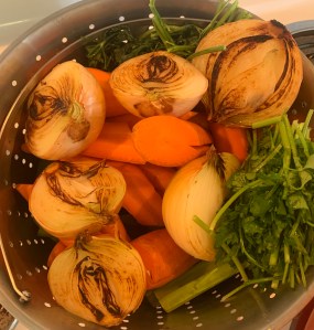 After dishing soup into bowls, garnish with sliced cucumbers, radish, and quartered hard boiled eggs.