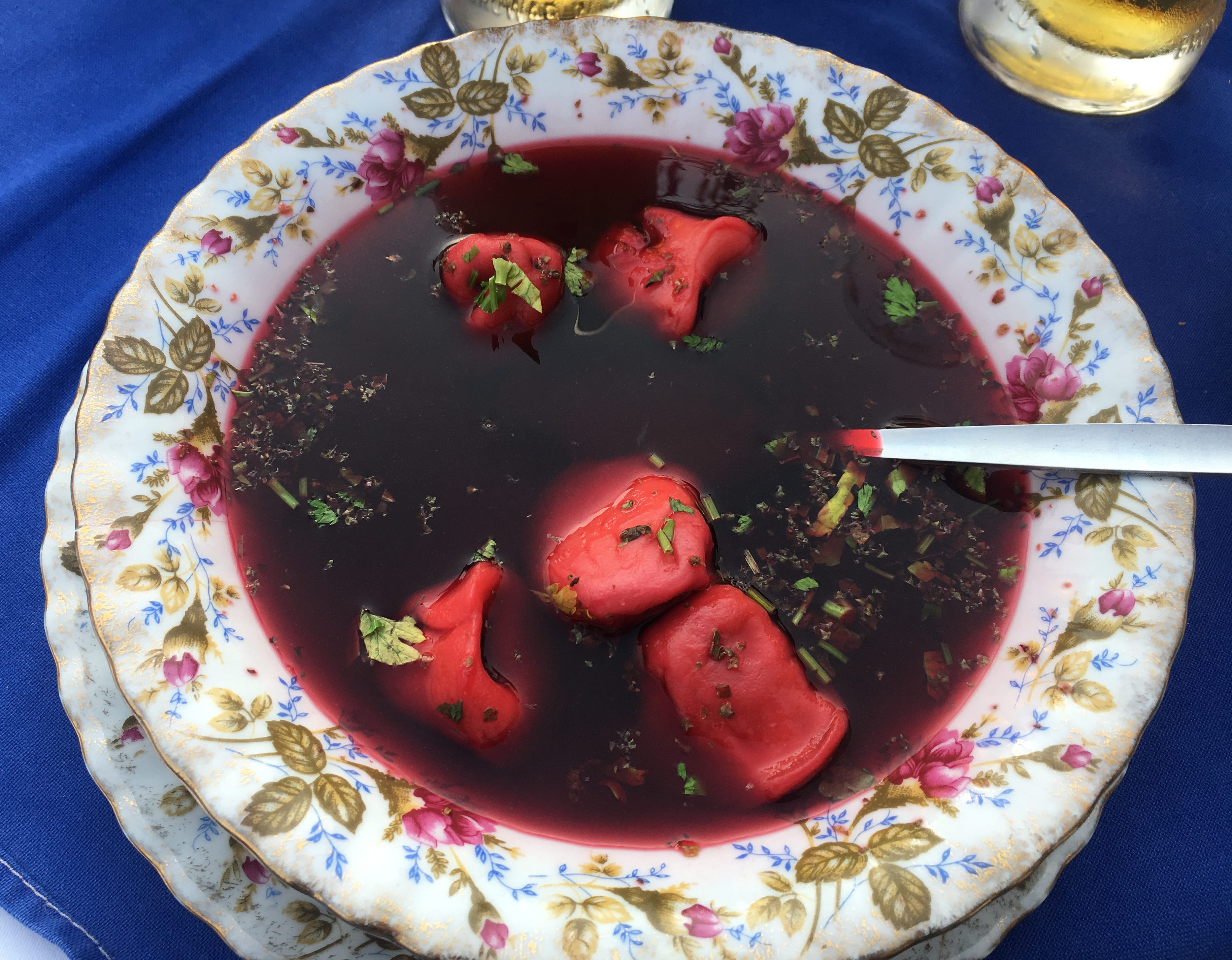 The last few days have felt hotter than satan’s kitchen on the 4th of July. If you find yourself melting under the sun, craving something light and refreshing, consider chłodnik! Chłodnik is a chilled barszcz (aka borscht) that is usually mixed with kefir and/or sour cream, creating a vibrant pink soup! The Polish answer to gazpacho. Does it sort of taste like a salad in soup form? Tak. Does the color remind one of pepto? Mayhaps! But it is yummy and pretty easy to put together, so give it a go! One note in ingredients…get a bunch of beets with the greens still attached. If you can only find loose beets, no prob, just add one bunch of Swiss chard or even lacinato kale.